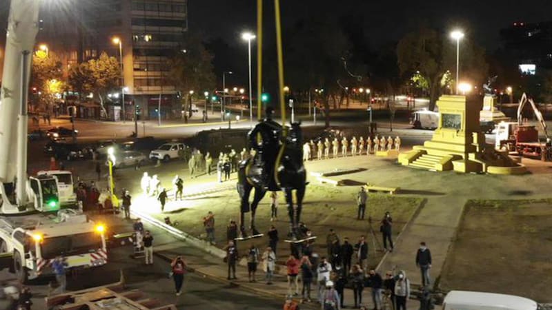 A eso de las 23.00 de este jueves comenzaron los trabajos para remover la estatua del general Baquedano ubicada en el sector de Plaza Italia.