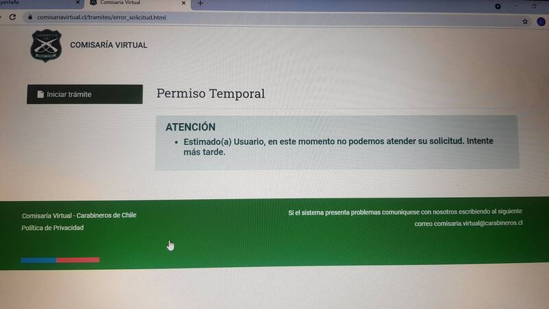 Según detallaron por medio de imágenes, al intentar sacar su permiso correspondiente, reciben el mensaje “En este momento no podemos atender su solicitud. Intente más tarde”.