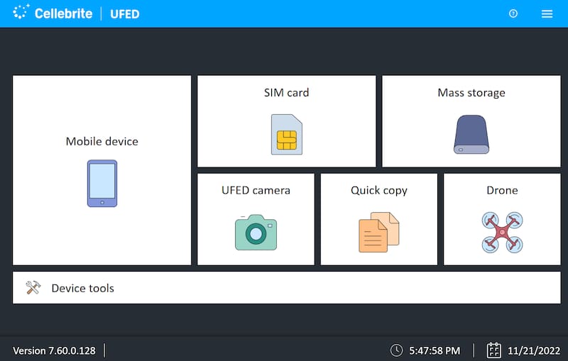 - Acceda a la gama más amplia de dispositivos móviles: acceda de forma legal a evidencia digital crítica desde teléfonos básicos, dispositivos móviles inteligentes, drones, tarjetas SIM, tarjetas SD, dispositivos GPS y muchos otros.