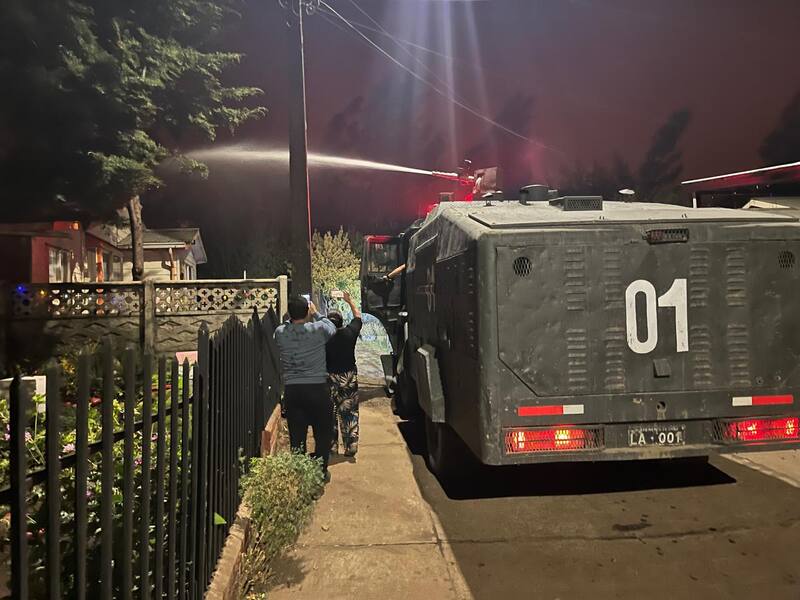 Producto de la emergencia, desde Carabineros también se han desplegado en las calles para contener las llamas, a través de los carros lanzaagua de Control de Orden Público (COP), además de colaborar en la evacuación de los residentes.