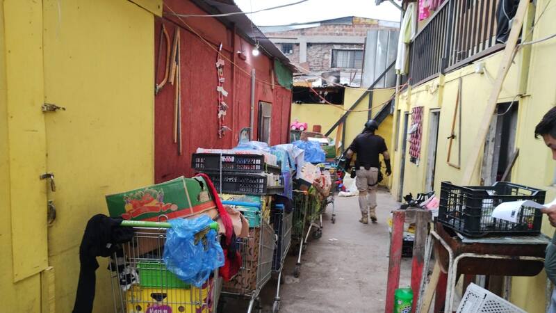 En el exterior de la propiedad funcionaba la barbería mientras que en su interior, de cerca de 30 metros de profundidad, se mantenían bodegas donde se guardaban los carros con comida y "cocinerías en las cuales se estaba preparando alimento entre el barro y sin agua potable".