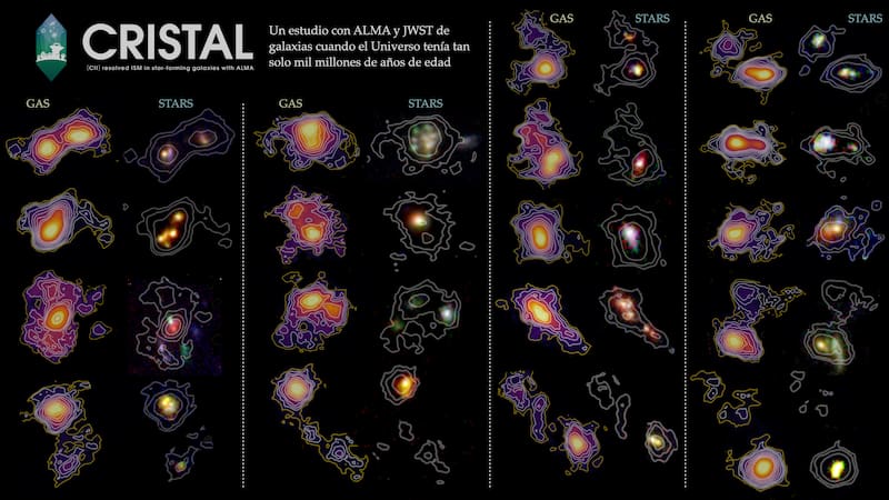Esta radiografía del universo temprano —también conocida como “Proyecto CRISTAL”— logró realizar el primer censo detallado del gas, polvo y estrellas en galaxias cuando el cosmos tenía entre mil y mil quinientos millones de años. Fue posible gracias a observaciones conjuntas con el observatorio ALMA, ubicado en el norte de Chile, y los telescopios espaciales James Webb y Hubble.