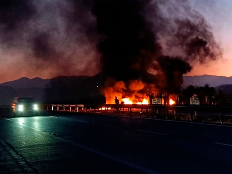 Según informaron desde Carabineros, alrededor de las 20:30 hrs en la Ruta 5 Norte, en el km 40 en dirección al norte, un grupo de 15 sujetos, entre adultos y menores, inhabilitaron una pista de circulación.