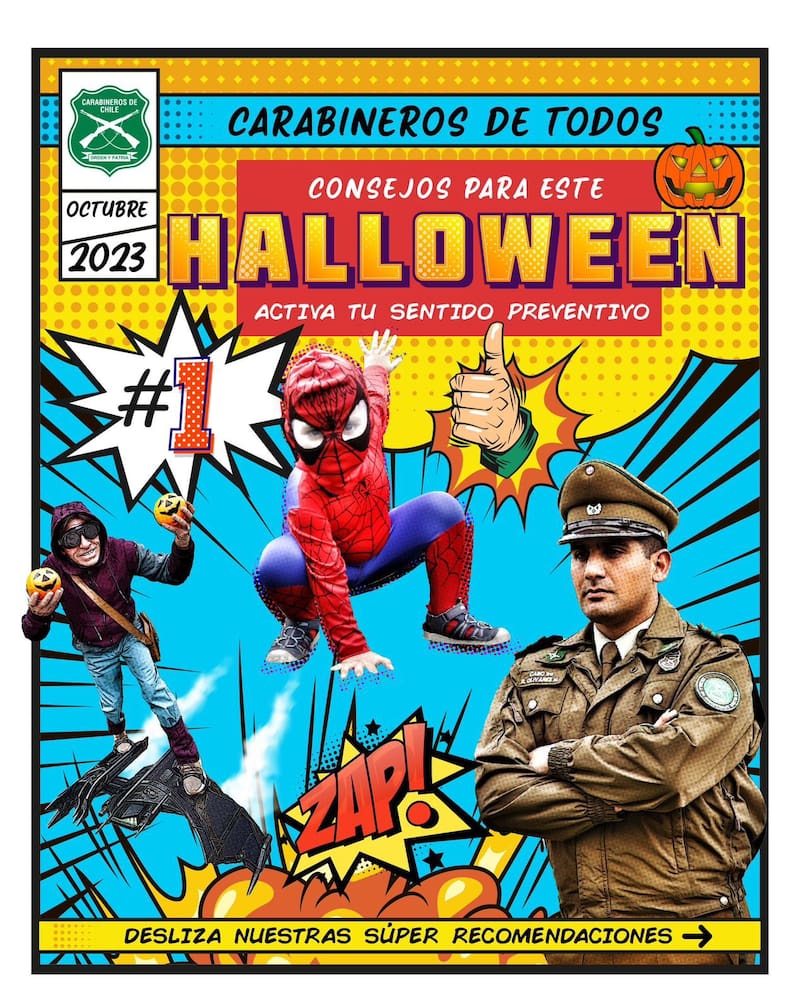La campaña incluye un video y viñetas que la institución policial ha viralizado estos días insistiendo en el llamado al cuidado de los niños y niñas y adolescentes, durante los festejos por el Día de Brujas.