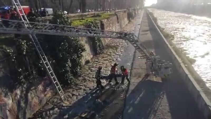 Con escala telescópica de “ángulo negativo” Bomberos rescató a hombre que cayó al lecho del río Mapocho