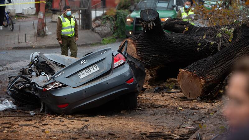 Por otro lado, el accidente ocurrido en Peñalolén se dio la Avenida Los Presidentes y Perú, luego de que un árbol de gran tamaño cayera sobre un vehículo pequeño.