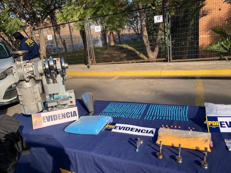 Según los antecedentes presentados por la Fiscalía, al momento de su detención se encontró en poder de los imputados una máquina automática, que mantenía adosado un motor, acuñando pastillas de MDMA.