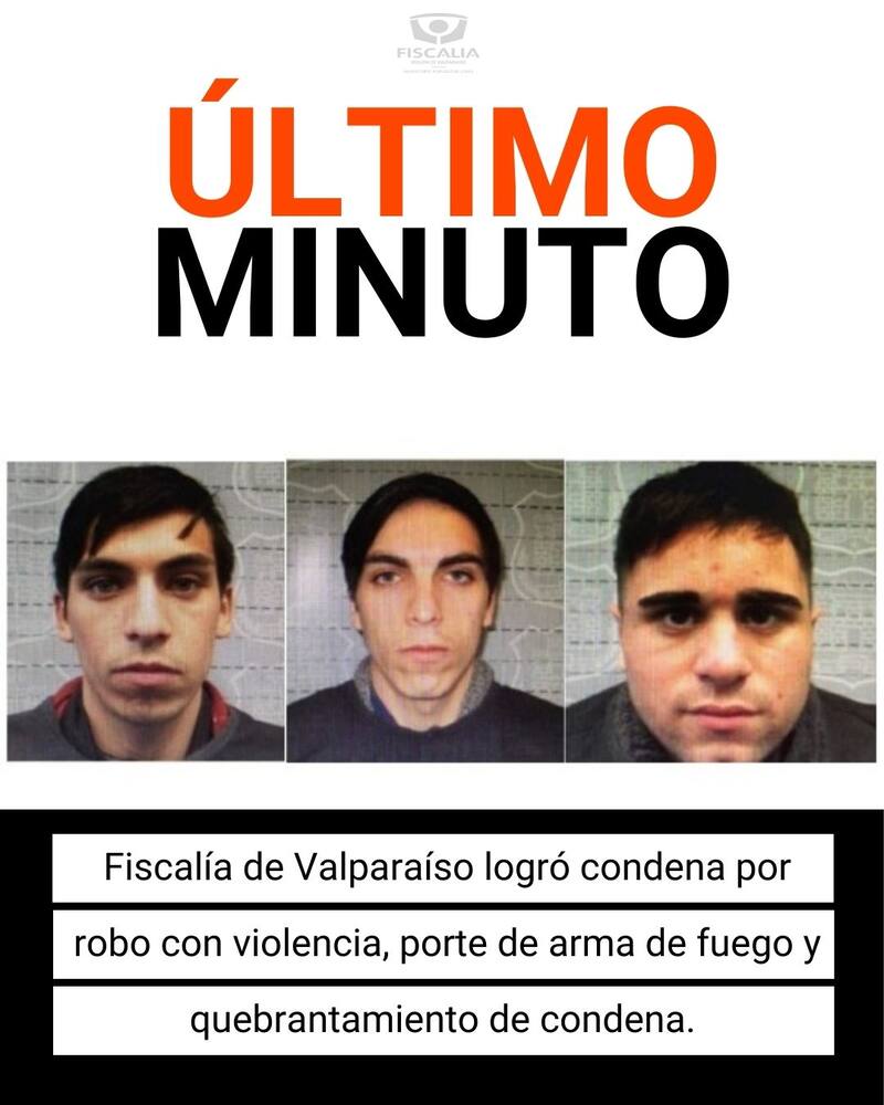 Acorde con el fiscal de Valparaíso, Felipe González, “a través de la prueba de cargos, que fue valorada por el Tribunal Oral en lo Penal de esta comuna, fueron condenados como autores de los delitos de robo con violencia, porte ilegal de arma de fuego y de quebramiento de condena”.