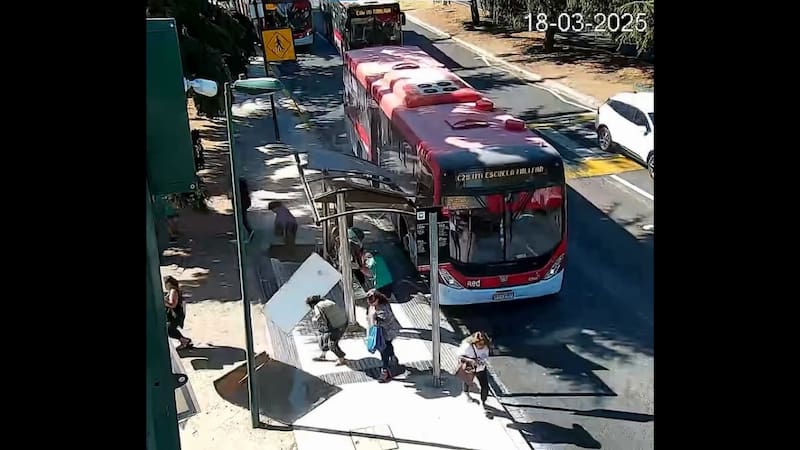 Captan momento en que bus RED destruye un paradero en Lo Barnechea: una mujer resultó lesionada