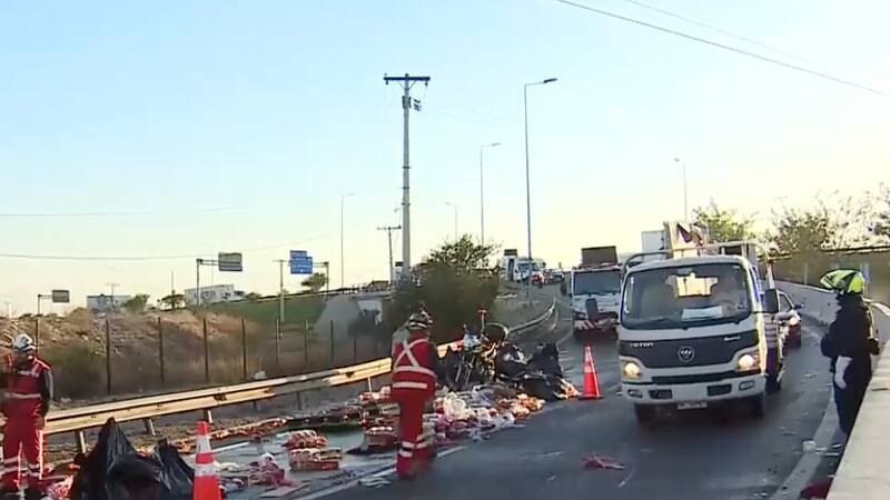 Por Daniela SilvaConductor sin licencia profesional vuelca carga de camión en Costanera Norte: fue detenido por Carabineros