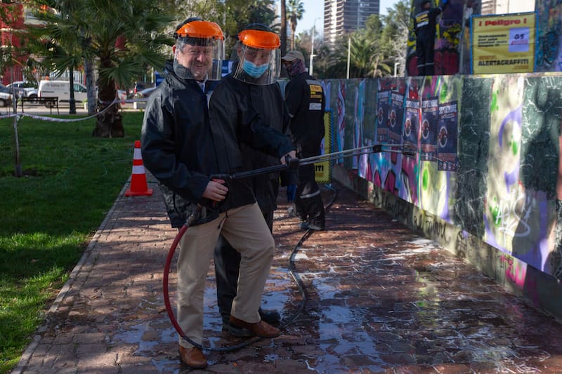 “El estado de las fachadas y monumentos de Santiago es deplorable. Luego de años de vandalismo y de grafiteo, como gobierno de Santiago tomamos la decisión de limpiarlos y recuperarlos para la ciudadanía. Por eso nos parece insólito que el Consejo de Monumentos Nacionales nos ordene suspender nuestras laborales, mientras que los que han hecho este daño quedan impunes”, lanzó el gobernador.