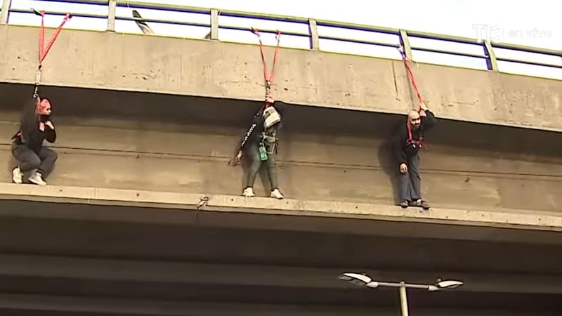 De este grupo de manifestantes, cuatro se han colgado de un paso sobre nivel exigiendo la presencia de las autoridades.