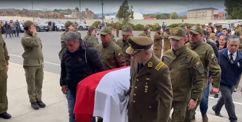 La tarde de este domingo, los cuerpos de los tres uniformados asesinados en Cañete, fueron trasladados desde el Servicio Médico Legal a la Escuela de Suboficiales de Carabineros en Concepción, para llevar a cabo una ceremonia de responso encabezada por el general director de Carabineros, Ricardo Yáñez.