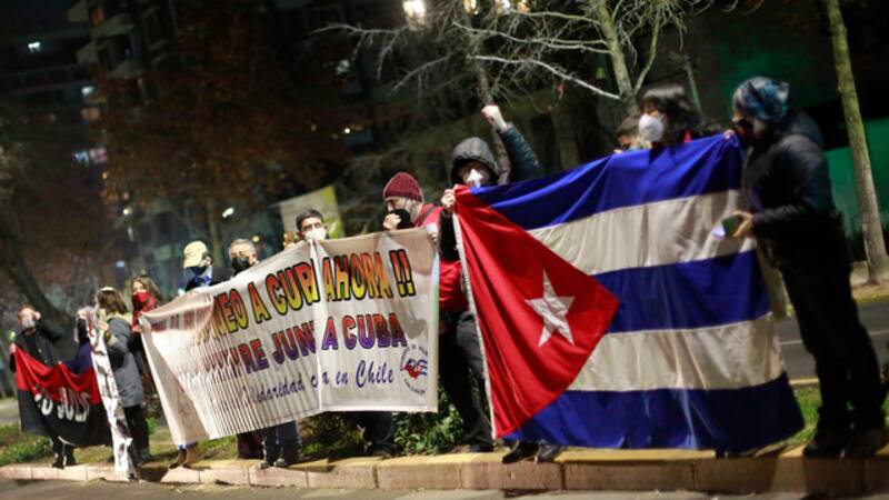 Cubanos en Chile se mantienen frente a consulado de su país en apoyo a las protestas contra el gobierno en la isla