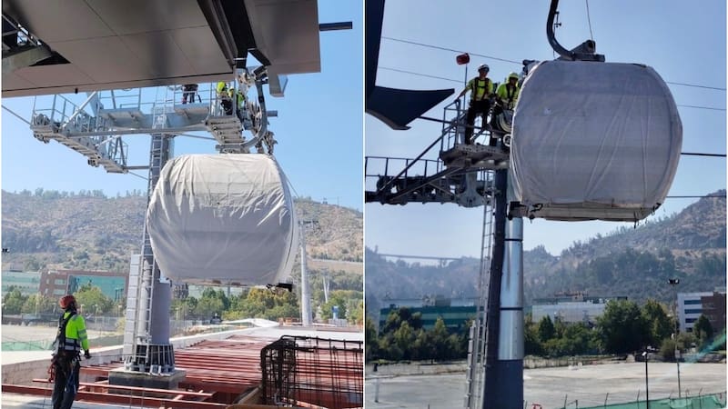 Por Daniela SilvaInstalan y prueban la primera cabina del Teleférico Bicentenario, proyecto que conectará Huechuraba y Providencia