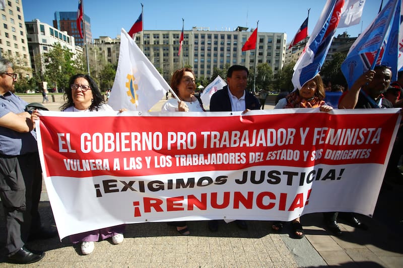 La Central Unitaria de Trabajadores (CUT) junto a la Agrupación Nacional de Empleados Fiscales (ANEF), durante la mañana de este lunes se sumaron a la movilización en la Plaza de la Constitución, impulsada por los gremios de La Moneda, para exigir la salida de Antonia Rozas, directora administrativa de la sede del Ejecutivo. La manifestación se da a casi un mes de la muerte de Hugo Morales, gásfiter que falleció mientras realizaba un turno de 18 horas.