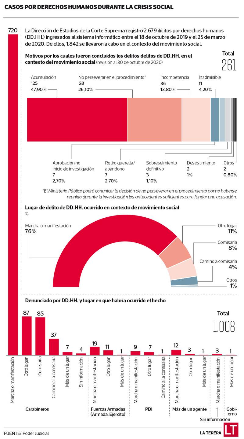 DD.HH. en la crisis social: 68 casos han sido cerrados ante tribunales por falta de antecedentes