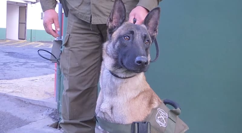 De acuerdo a Carabineros, el canino se llama Luksic y logró encontrar en el operativo un revólver calibre .40, munición y cartuchos percutados.