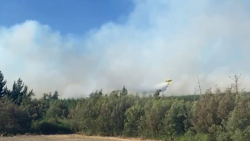 Para controlar la emergencia trabajan bomberos de Yumbel y Cabrero, además de ocho brigadas y dos técnicos de la Conaf. También hay dos aviones cisterna apoyando.