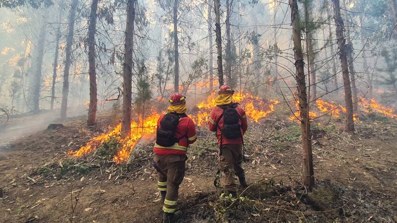 El fuego afecta una superficie preliminar de 0,01 hectáreas del bosque, principalmente a vegetación nativa que está compuesta por araucarias.