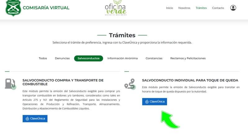 “Ingresar a www.comisariavirtual.cl en el módulo ”Salvoconducto por toque de queda". Utilizando su clave única, completar los datos personales del ciudadano y el sistema entregará posteriormente al correo electrónico de la persona el salvoconducto, el cual deberá ser expuesto ante la autoridad competente", explicó el comisario (s) de Comisaría Virtual, capitán Javier Godoy Palacios.
