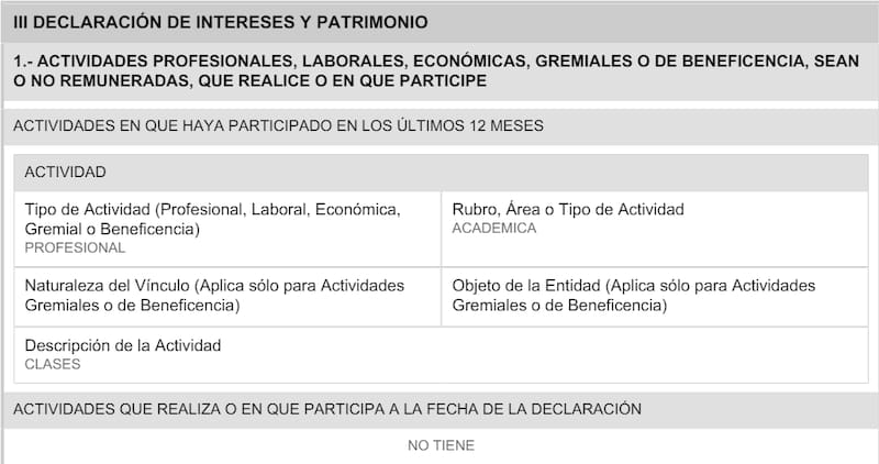 En el mismo escrito, además, se hace presente que las declaraciones de intereses y patrimonio presentadas por Navarrete en los años 2021 y 2022 éste omitió información respecto de su rol académico, aunque en años posteriores sí lo incluyó.
