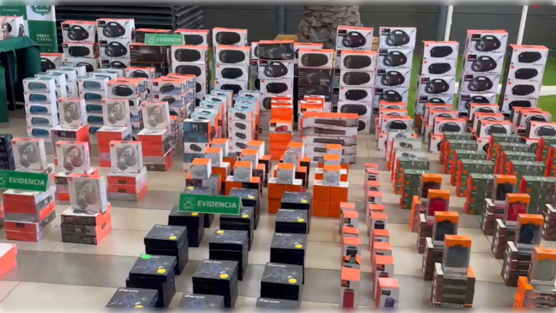 La operación concluyó con 2.041 productos incautados, entre cables, adaptadores y cargadores para iPhone, así como baterías para el mismo dispositivo. También se hallaron parlantes y audífonos falsos de la marca JBL, como también 3.159 logos adhesivos de dicha marca.