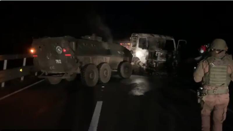 Los individuos quemaron un camión y lo dejaron atravesado en la vía, para luego proceder a incendiar otros dos camiones, un tractor y una cuadrimoto.