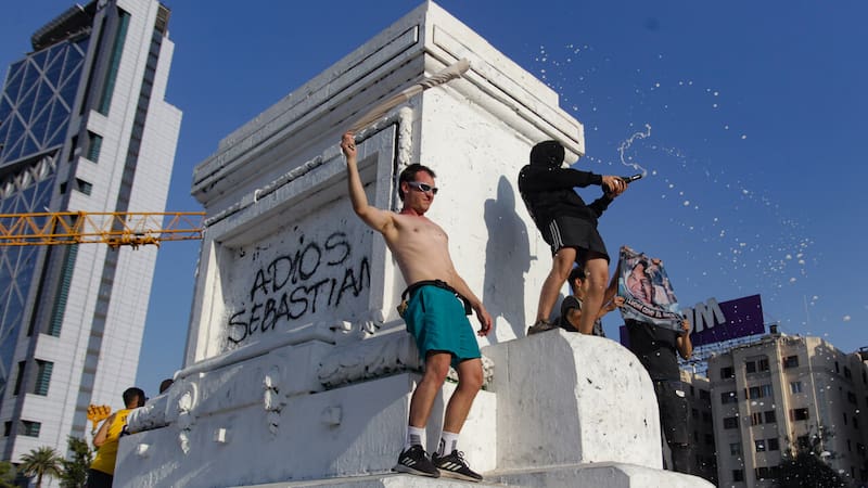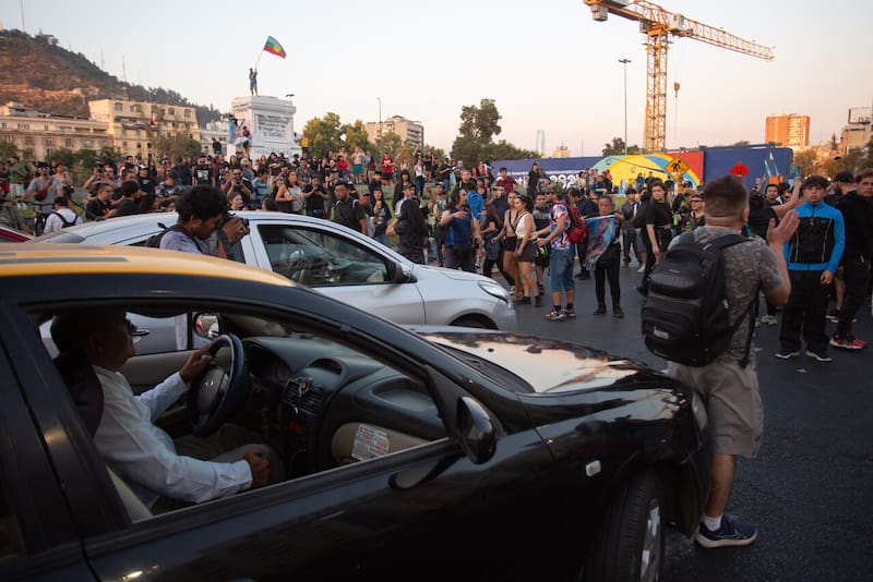 Los detractores del exmandatario cortaron el tránsito durante la tarde de este martes. De hecho, Metro informó a las 20.44 que la estación Baquedano había sido cerrado por los disturbios en el exterior. Hasta ese lugar acudió personal de Carabineros para restablecer el orden público.