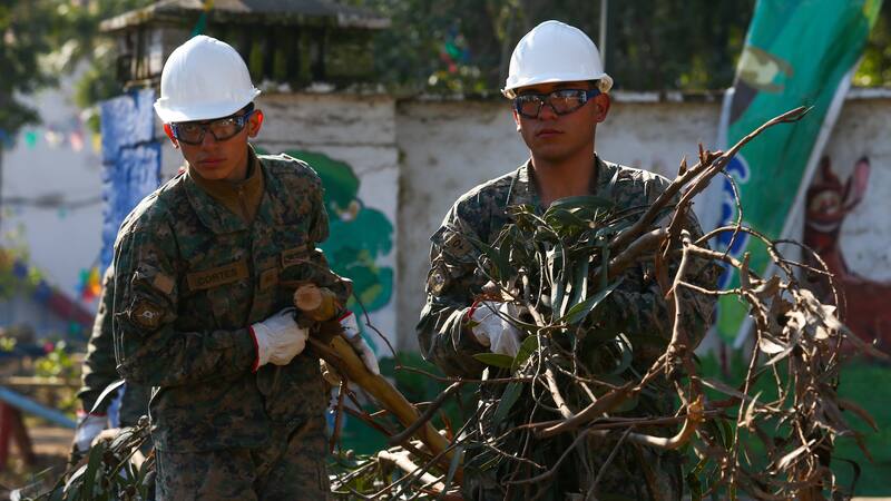 “El Ejército, como siempre, ha actuado rápidamente. Esta solicitud llegó ayer y ya estamos aquí para apoyar en la remoción de escombros y árboles, que es muy necesario en este momento”, señaló la ministra Fernández. Las cuadrillas militares, compuestas por 30 efectivos en cada comuna, están trabajando en respuesta a un requerimiento que, previa conversación con los alcaldes, nace en la Delegación Presidencial, quien, a su vez, solicita a las autoridades militares regionales -representantes de las FF.AA. en los Cogrid- la facilitación de capacidades, todo por intermedio del Servicio Nacional de Prevención y Respuesta ante Desastres (Senapred).