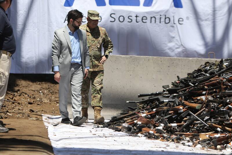 Durante esta jornada fueron destruidas 17.590 armas. "Este hito del que hoy día participamos da cuenta de un trabajo coordinado de las diferentes instituciones del Estado", dijo el Presidente Boric.