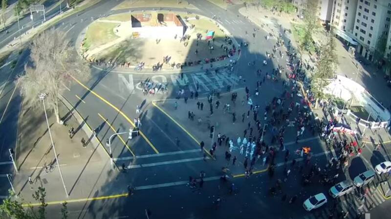 A partir de las 18:00, Carabineros de la Prefectura Oriente a través de su cuenta de Twitter comunicó sobre los “desvíos preventivos en el sector de Plaza Baquedano, debido a que un grupo de personas interrumpió el tránsito”.