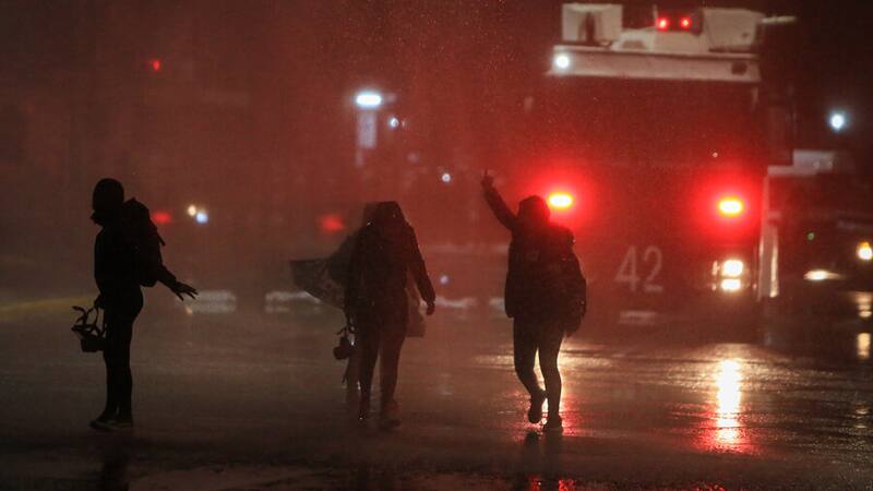 Personal de Carabineros se encuentra en el lugar y ha usado un carro lanzaguas para dispersar a los manifestantes.