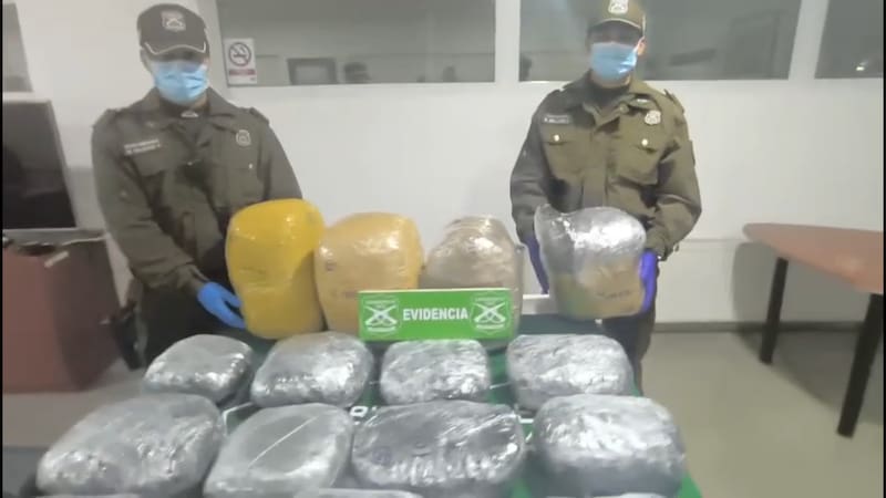 Funcionarios de Carabineros de la 14ª Comisaría de San Bernardo y personal de la escuela de Suboficiales fiscalizaron el vehículo Mazda en que se transportaban estas personas tras sentir un fuerte olor a marihuana desde una mochila en el maletero. Al abrirla encontraron 10 paquetes con la mencionada droga, equivalentes a 31 kilos en total.