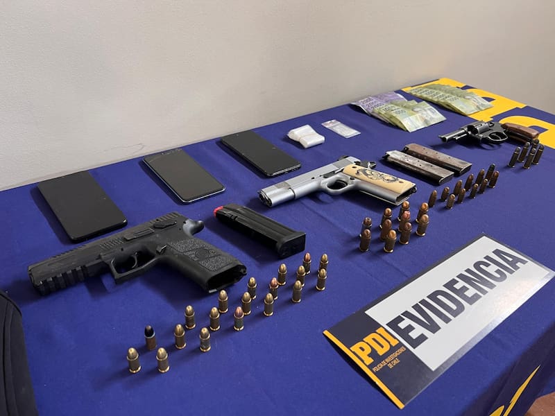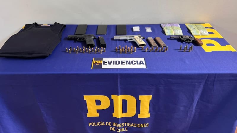 El subprefecto José Castillo, jefe de la Brigada de Investigación Criminal (Bicrim) Peñalolén, señaló que “en este proceso investigativo, incautamos 3 armas de fuego, más de 30 cartuchos de distintos calibres, un chaleco antibalas, cámara de vigilancia, entre otras especies”.