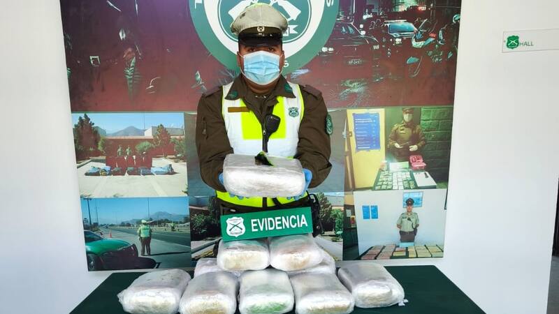 El contenido corresponde a 10 kilos 900 gramos de la sustancia ilícita. Con todo, el Ministerio Público instruyó que el hombre pasara a control de detención durante este domingo.