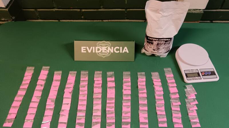 Es así como Carabineros logró la incautación de 117 dosis de tusi, una bolsa con cafeína, sustancia utilizada para mezclar esta droga, y una pesa digital.