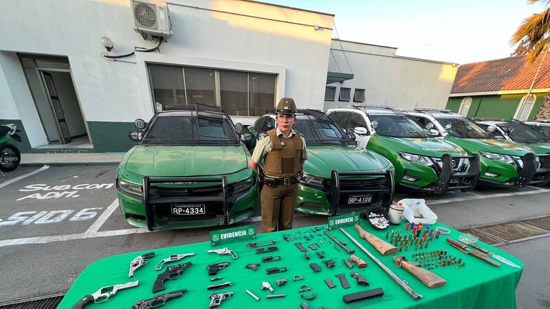 Tras la revisión del inmueble, se encontraron distintos implementos con los cuales se presume que la persona detenida fabricaba y modificaba armamento y municiones. Entre las especies incautadas se encuentran siete revólveres y seis pistolas, todas ellas sin número de serie, además de cinco cargadores sin marca ni modelo, 42 municiones de distintas marcas y calibres, dos taladros, una máquina de soldar y un tarro con 500 gramos de pólvora.