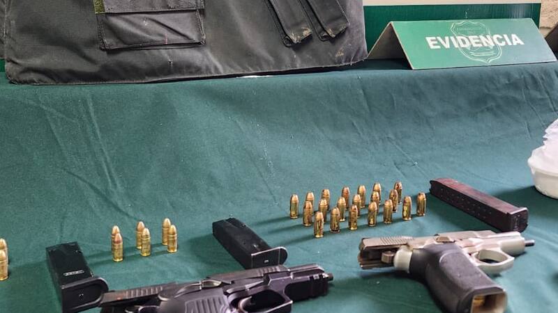 Durante el operativo también se logró la incautación de armamento y municipio en manos de estas personas, quienes tenían tres pistolas, un cargador de un subfusil UZI con municiones, tres cargadores para pistolas 9mm, otro cargador con balas calibre .40 y un chaleco antibalas que se periciará si perteneció a Gendarmería.