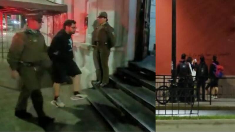 La aprehensión de los presuntos implicados se concretó a eso de las 19.45 horas por efectivos de Carabineros de la Primera Comisaría de Santiago, tras ser alertados de la presencia de tres hombres y dos mujeres jóvenes, vestidos todos de negro que vandalizaban el frontis del recinto. Al llegar la policía al lugar, los sujetos habrían intentado escapar corriendo, siendo alcanzados a la altura del Centro Cultural Gabriela Mistral (GAM).