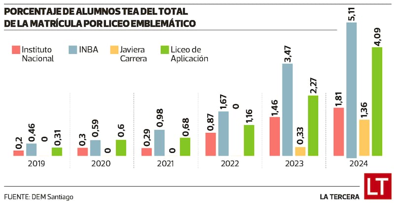 La entrada de estudiantes con TEA y necesidades especiales a los emblemáticos, explica Acevedo, se dio en 2019. Ese fue el año en que entró en vigencia el nuevo Sistema de Admisión Escolar de Santiago (SAE), conocido coloquialmente como la “tómbola”. Se eliminó la prueba de entrada, por lo que se diversificó la matrícula a alumnos que antes no podían entrar. Es decir, no tenías que tener necesariamente las mejores notas para entrar a un emblemático.