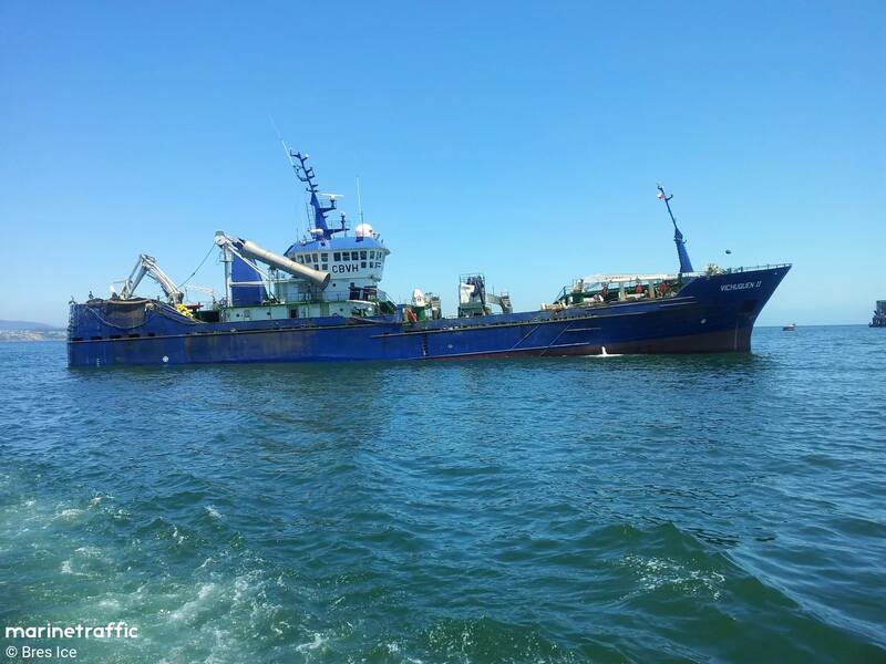 Por su parte, el Vichuquen II es un buque pesquero que tiene 70 metros de longitud y 12,6 metros de ancho. Le pertenece a Alimentos Marinos S.A. (Alimar), que destaca “sus 65 años de historia en el mar” y que “realizan pesca pelágica, principalmente de jurel, sardina y anchoveta”.