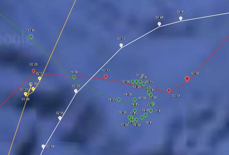 En ellos se puede observar la trayectoria de Bruma, Cobra, Don Tito y Vichuquen II. Reconstruyendo su paso en el mar, se demuestra que las embarcaciones estuvieron todas cerca del lugar del naufragio y donde se perdió el rastro de la lancha a motor.