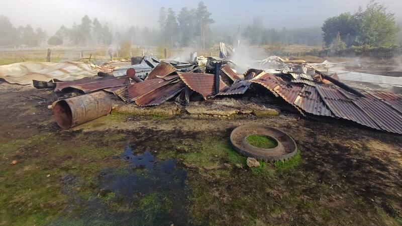 Carabineros del Retén Villa Santa Olga concurrió al sector rural de Barranquilla, Papalillo de Santa Olga, en horas de la mañana, encontrando la propiedad consumida en su totalidad por las llamas.