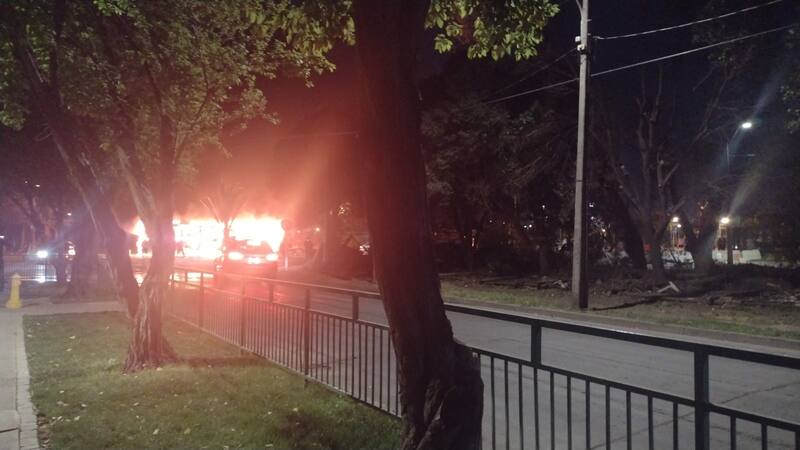Durante esta noche se reportaron dos buses del transporte público quemados en el sector de Villa Francia, en la comuna de Estación Central.
