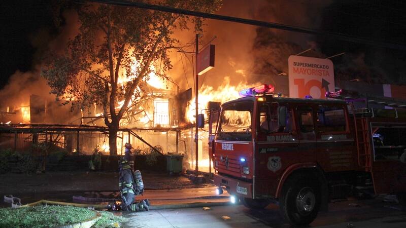 Un incendio estructural se registró la noche de este miércoles en la comuna de Los Andes, Región de Valparaíso, afectando a dos locales comerciales y a un supermercado.