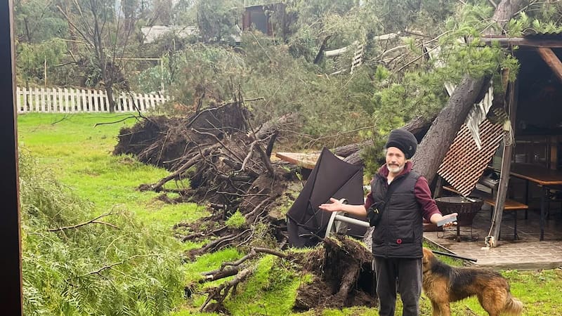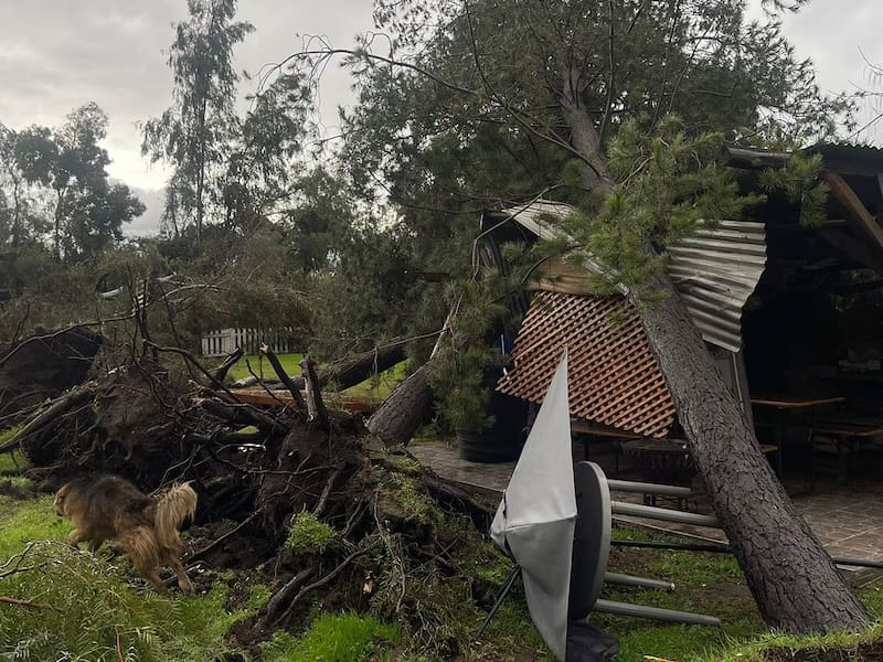 Asimismo, el músico compartió fotos de los árboles que cayeron en su propiedad producto de los fuertes vientos. Dos de ellos, se precipitaron sobre el techo del quincho en el patio.