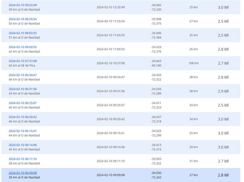 El inicio de esta secuencia sísmica se registró desde las 06.08 horas de este sábado, donde 12 fueron informados por el CSN, y variaron entre las magnitudes 2.5 y 3.0 (Ml).