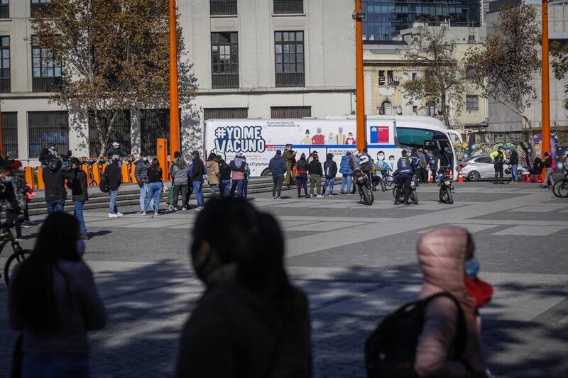 Durante este domingo se registraron largas filas en el vacunatorio móvil emplazado en las cercanías de la Estación Mapocho. Y es que como un plan enfocado en reforzar el proceso de inmunización masiva contra el virus, Salud desplegó desde hace algunas semanas la estrategia de vacunatorios móviles -o “vacunación extramuro”- en distintos puntos de la Región Metropolitana.