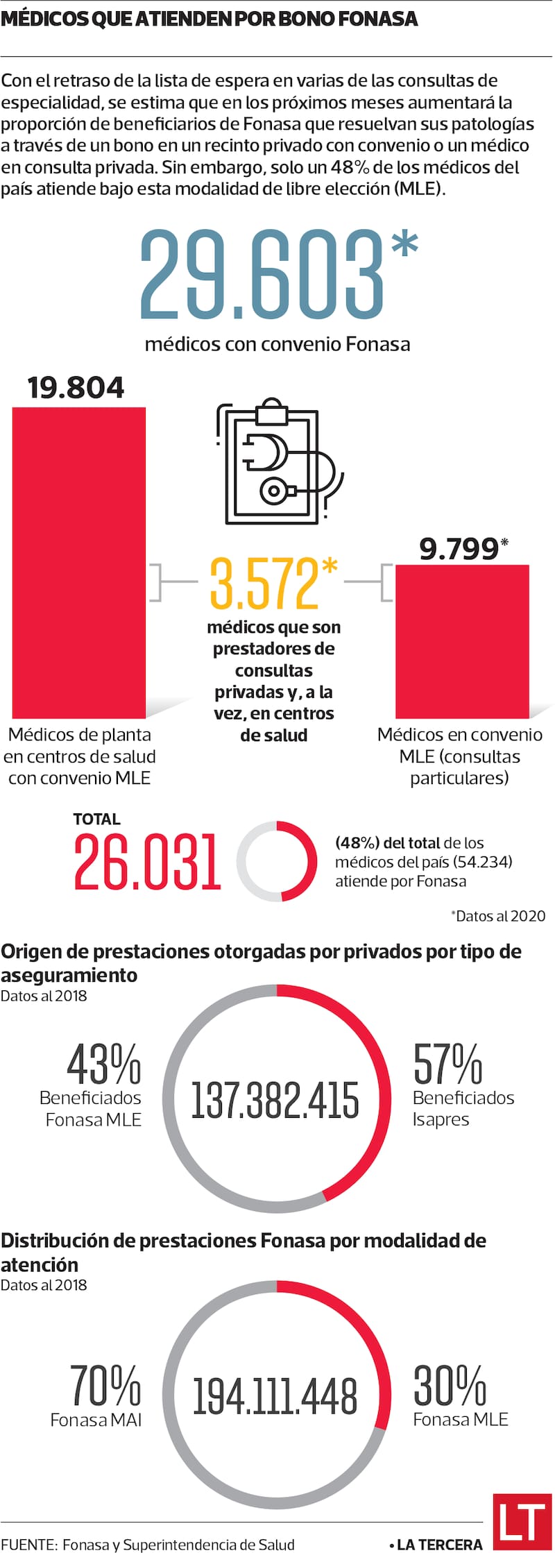 El 48% de los médicos del país atiende a pacientes de Fonasa por la vía de la compra de bonos